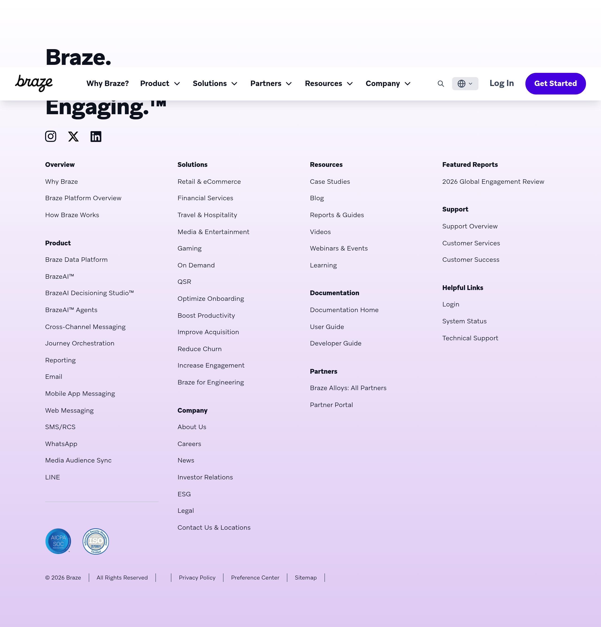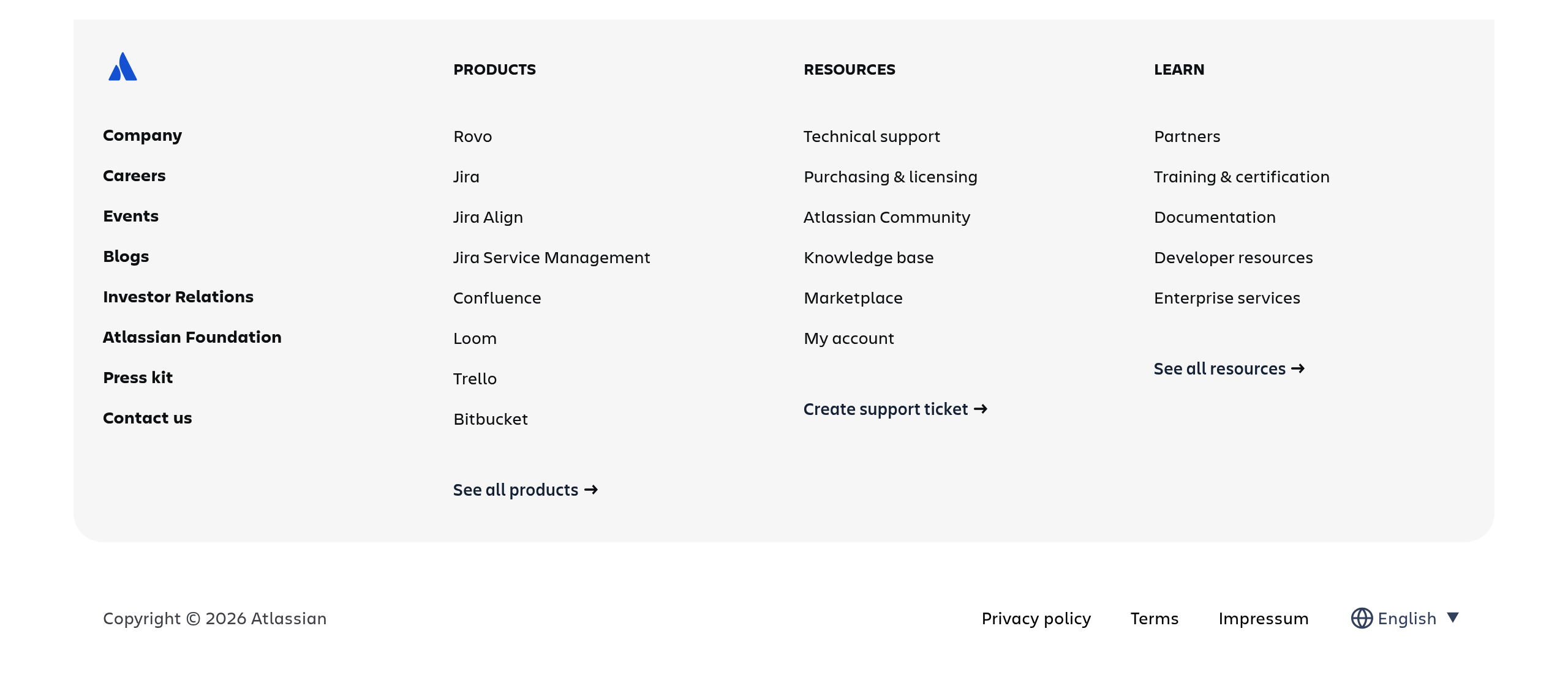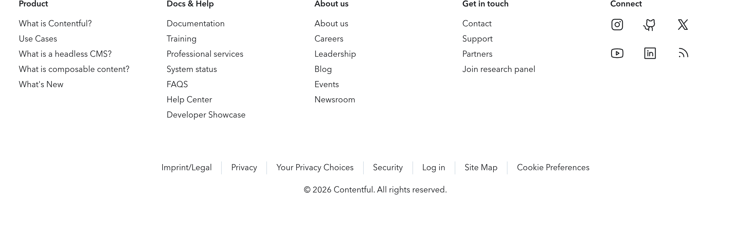 Footers should be consistent across the site but can be contextual (different links on product vs. marketing pages).