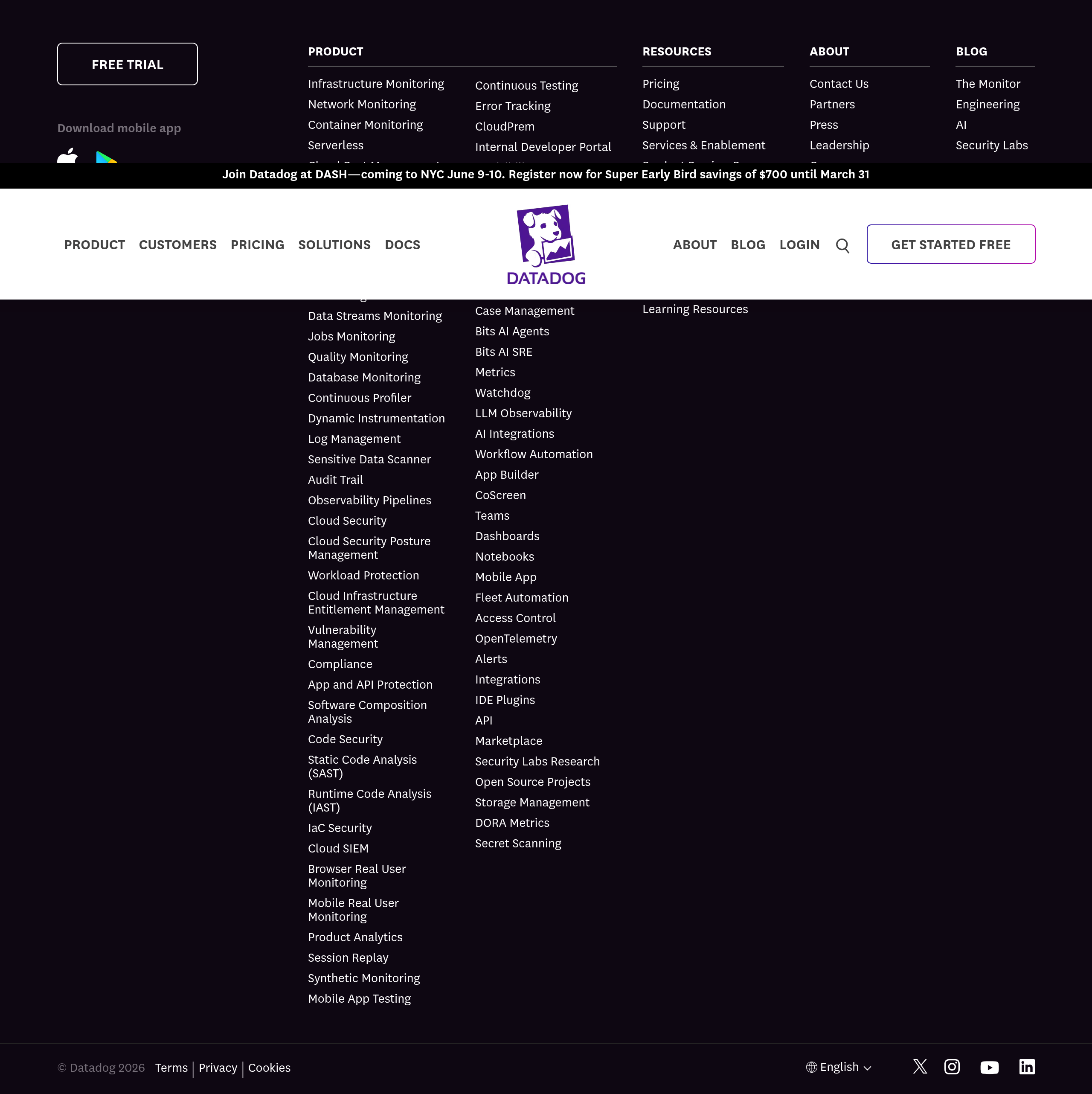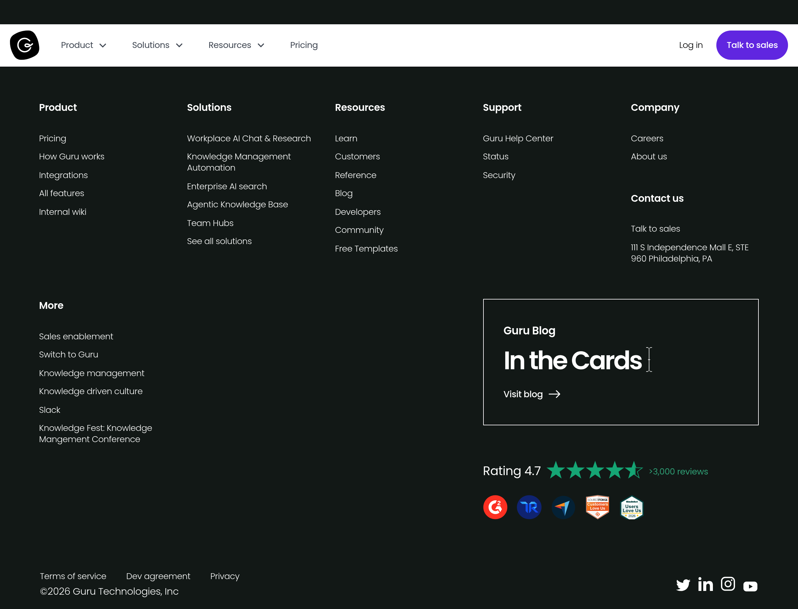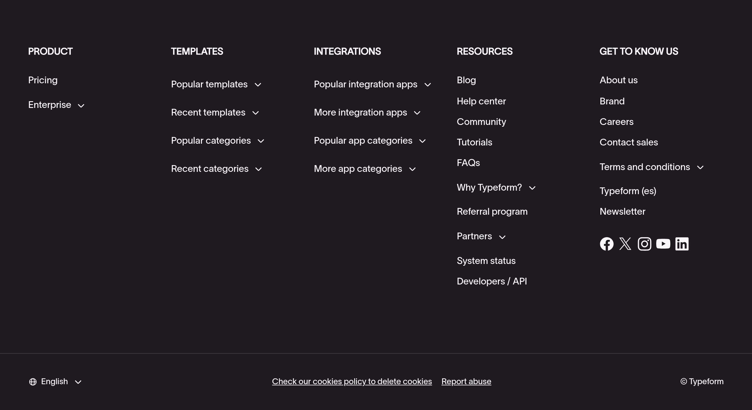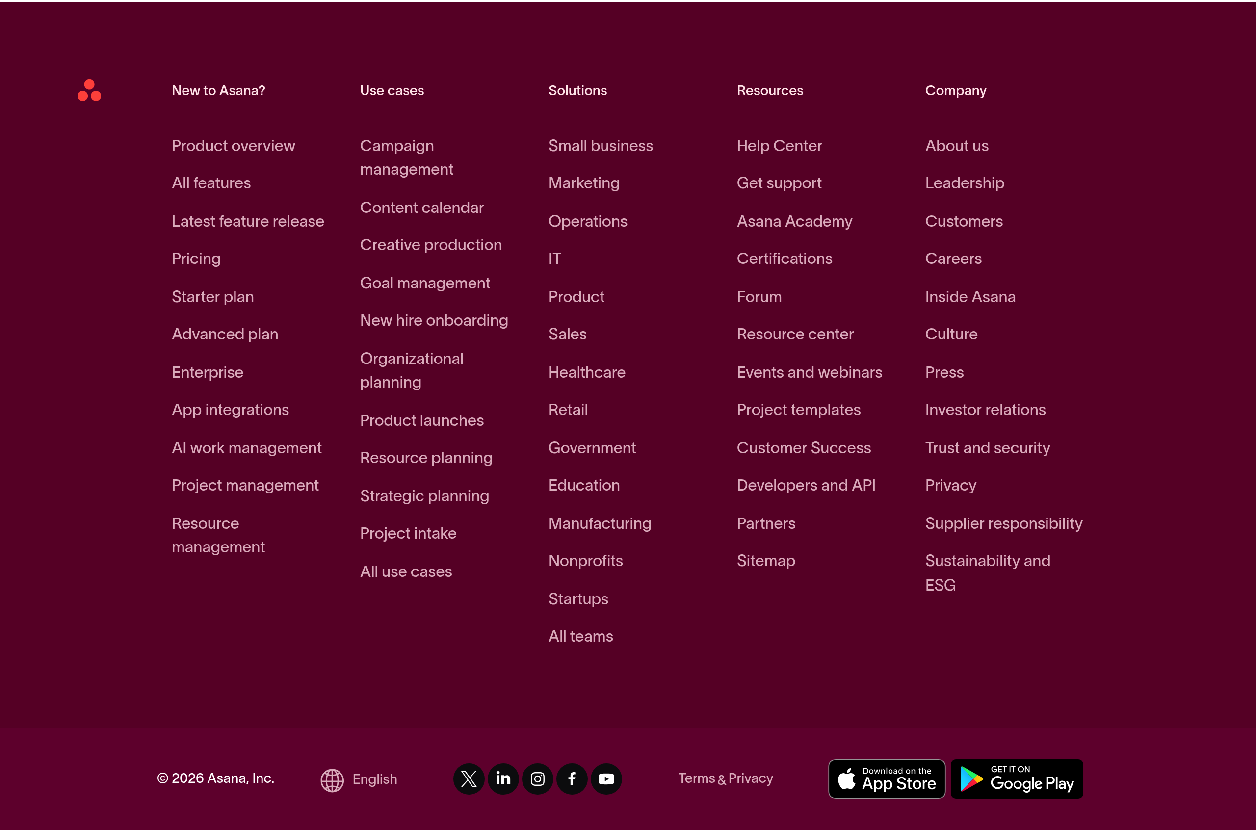 Footers should be consistent across the site but can be contextual (different links on product vs. marketing pages).