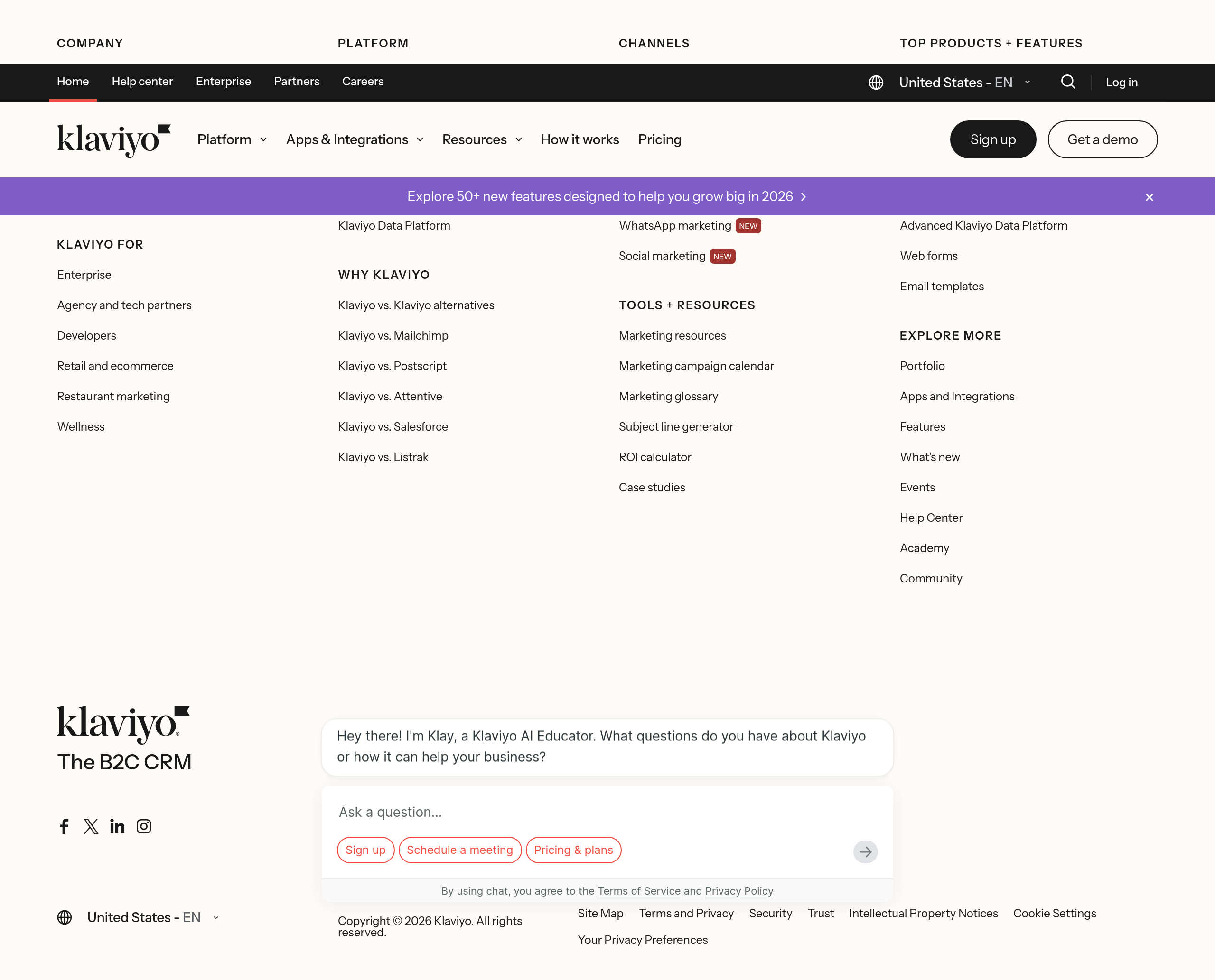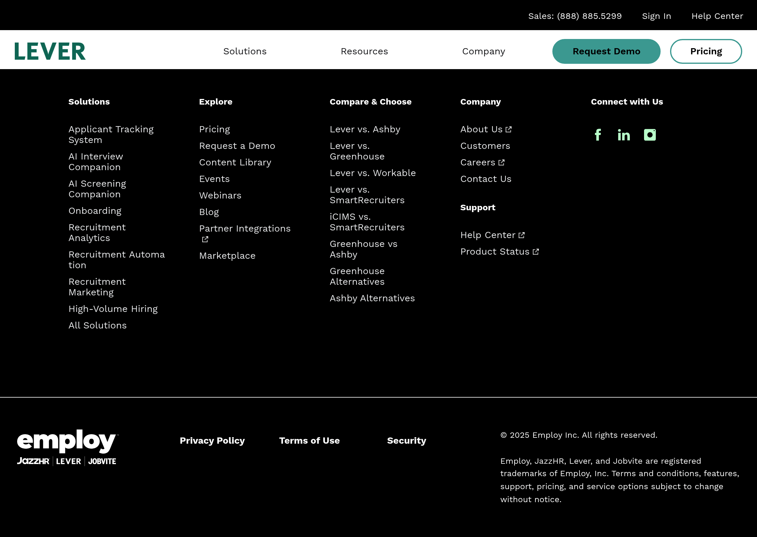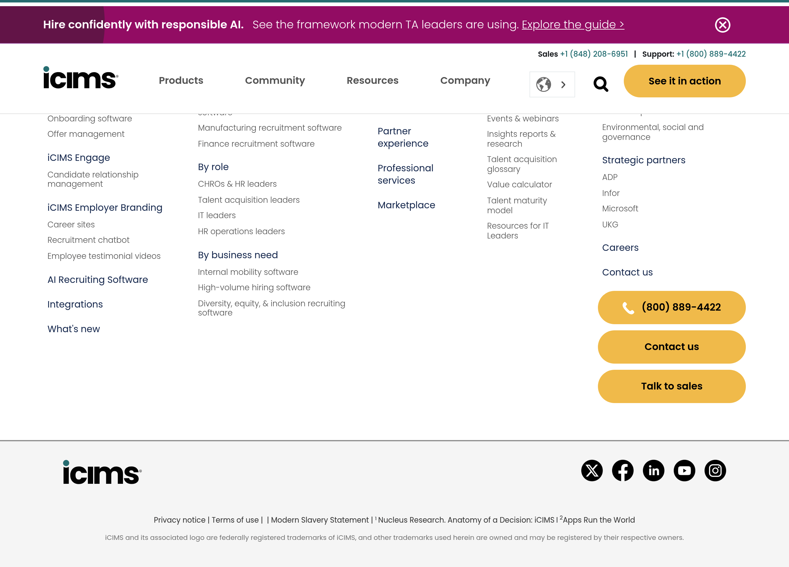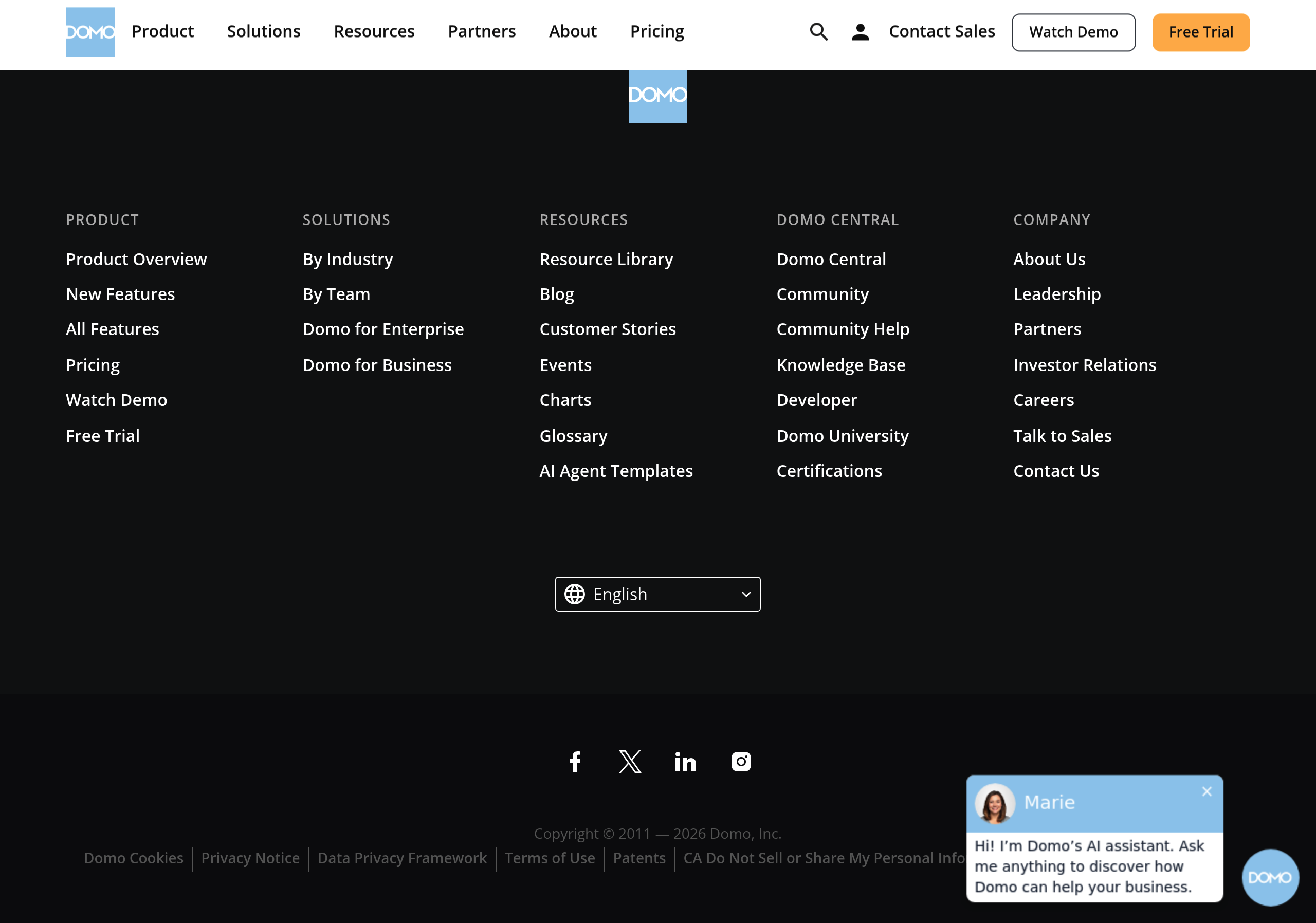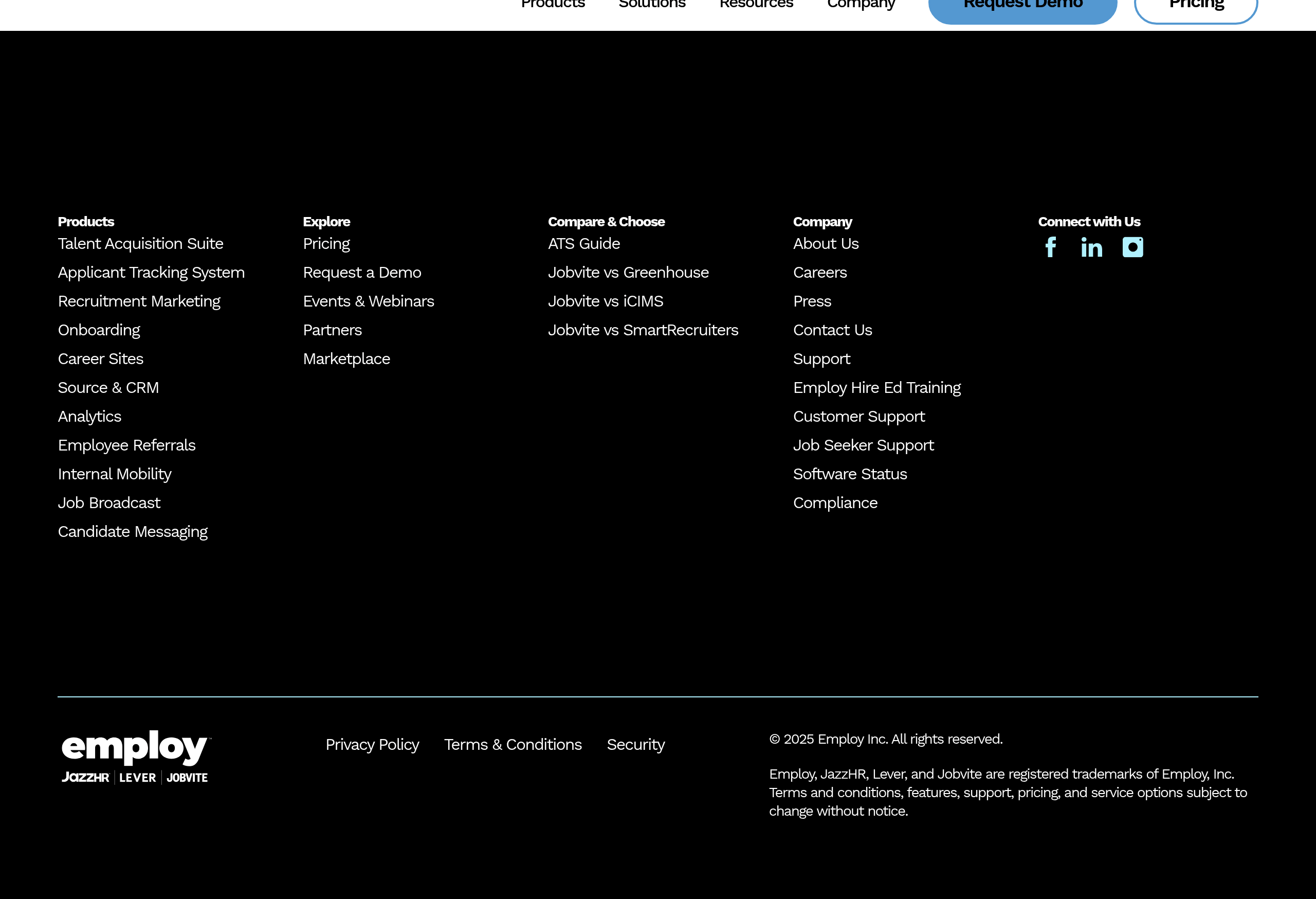 - Include company + product links, plus legal (Privacy/Terms) and contact options.