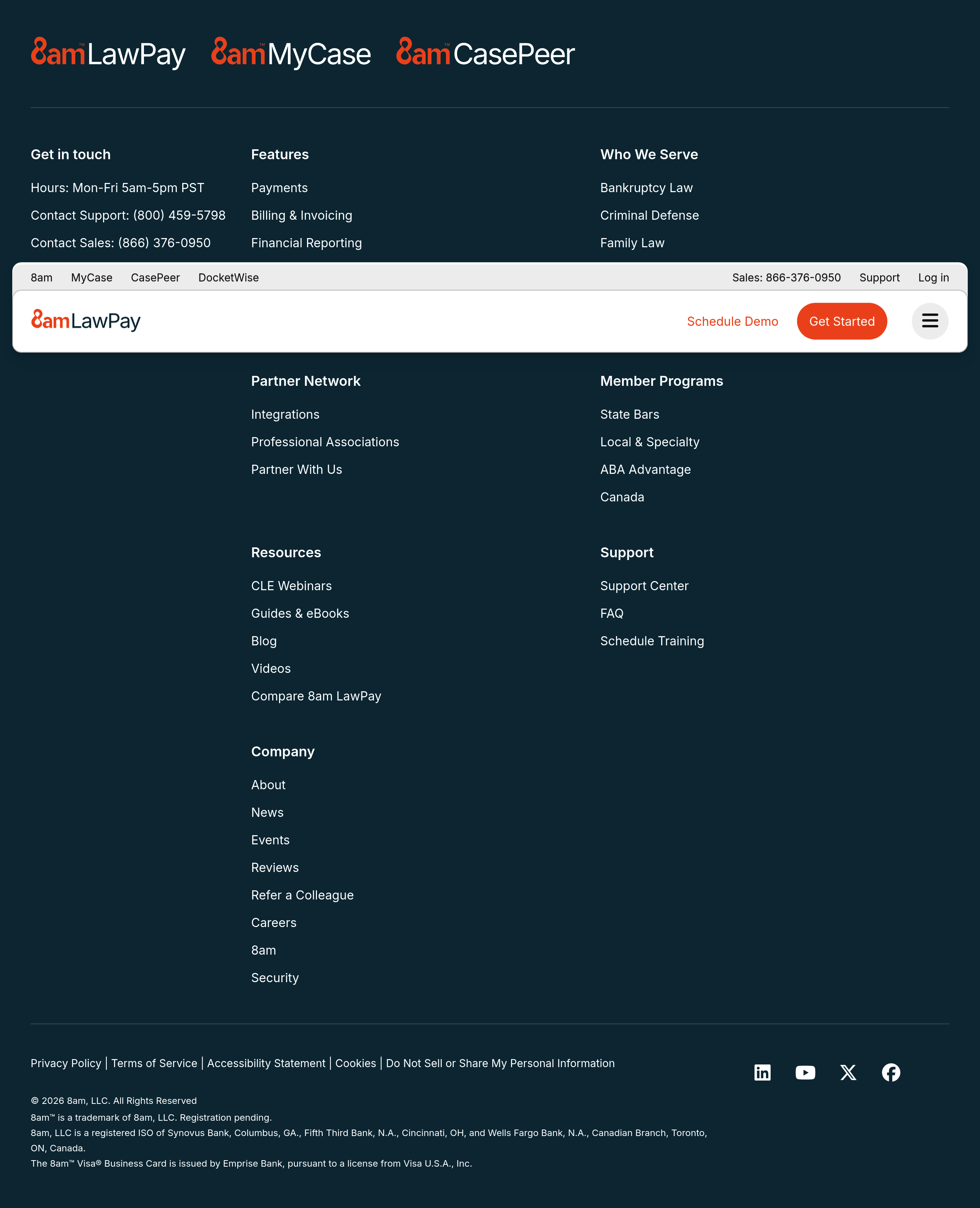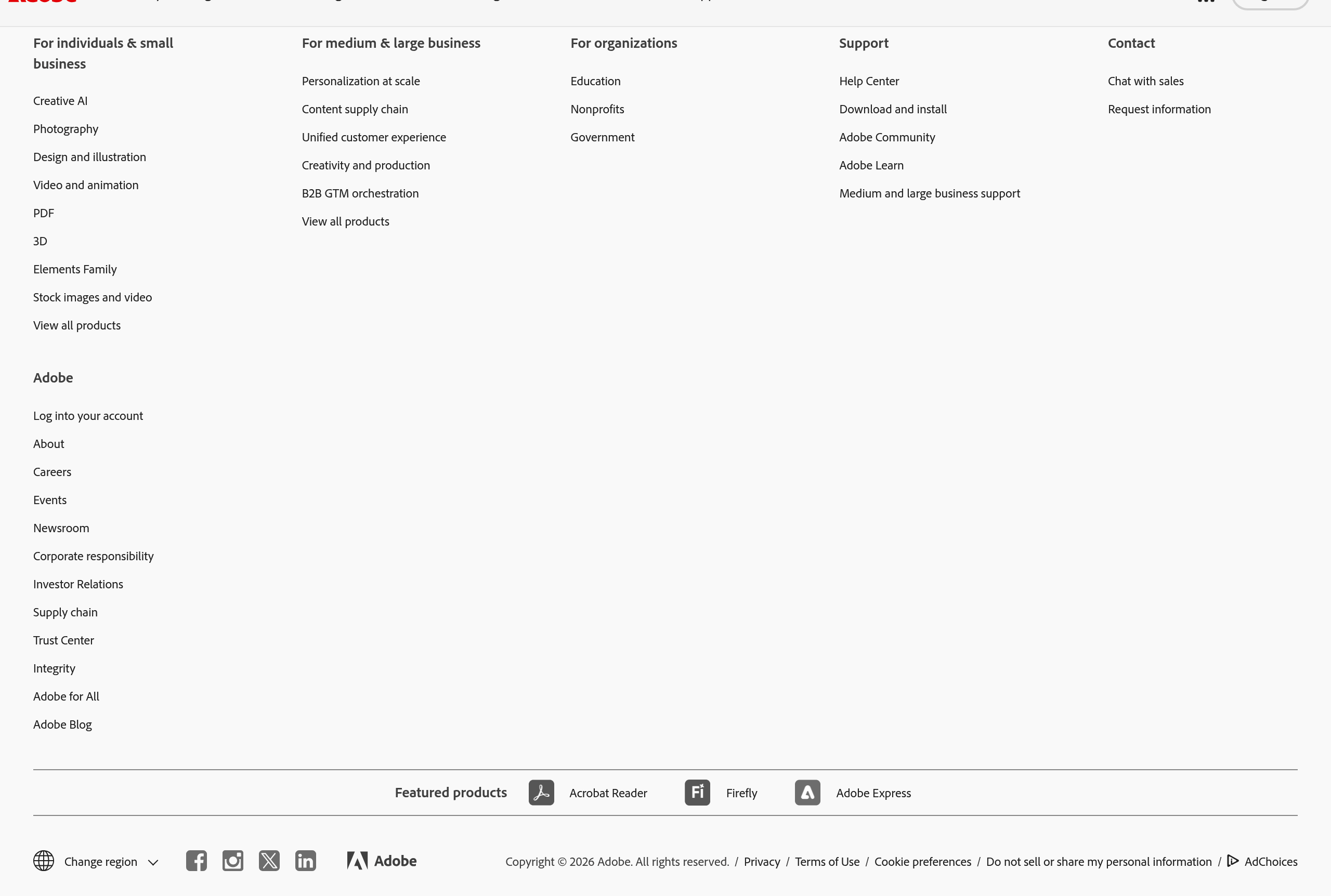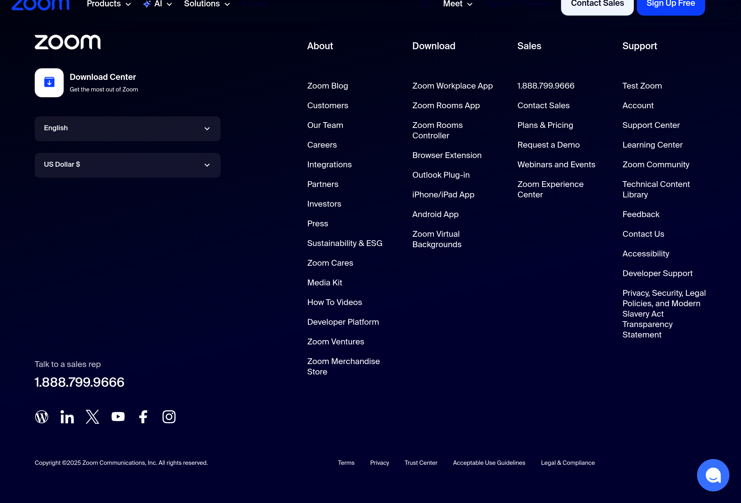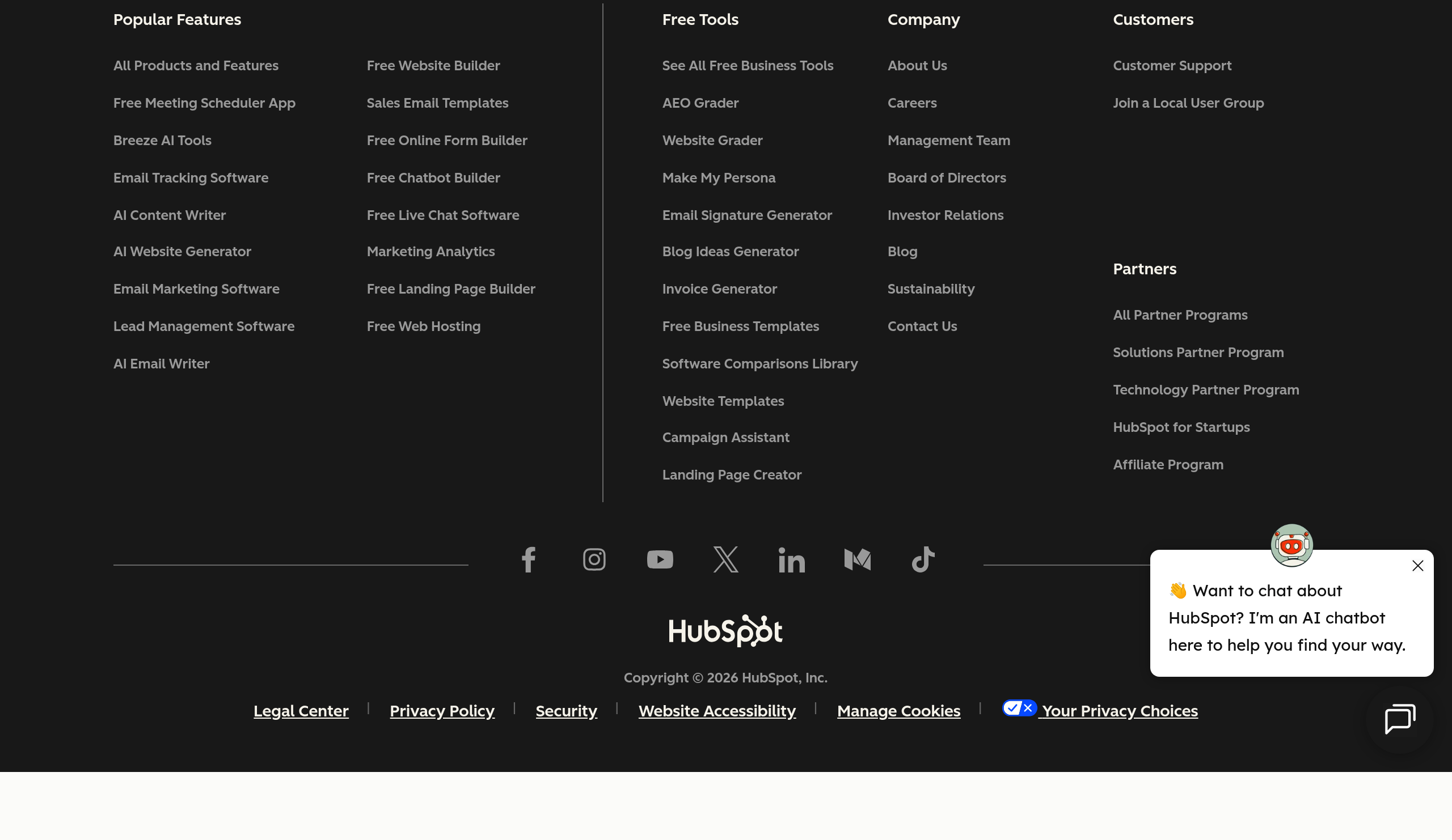- Include company + product links, plus legal (Privacy/Terms) and contact options.