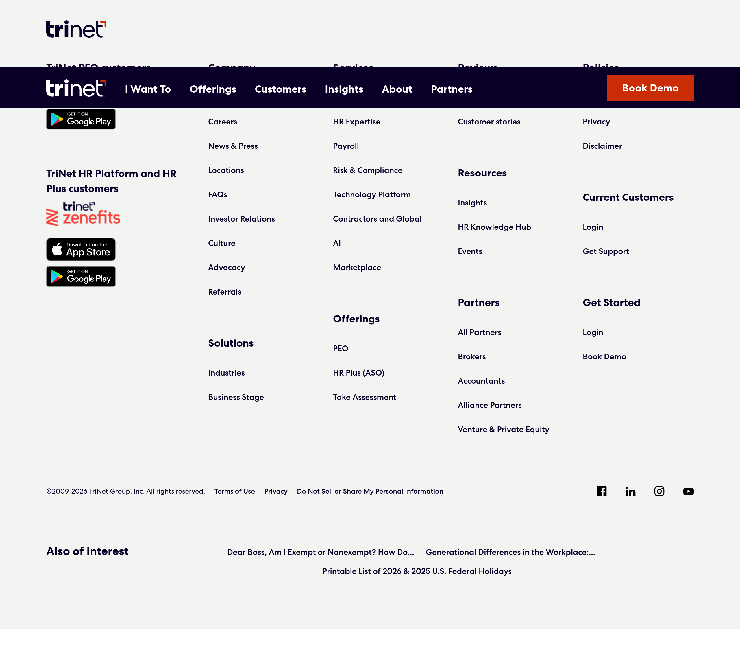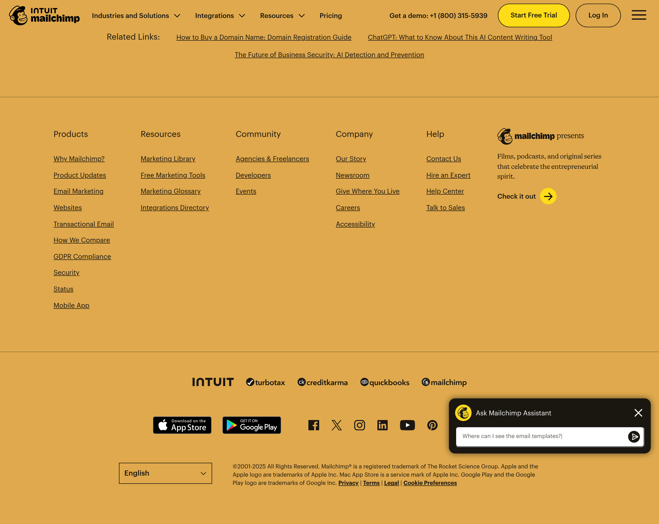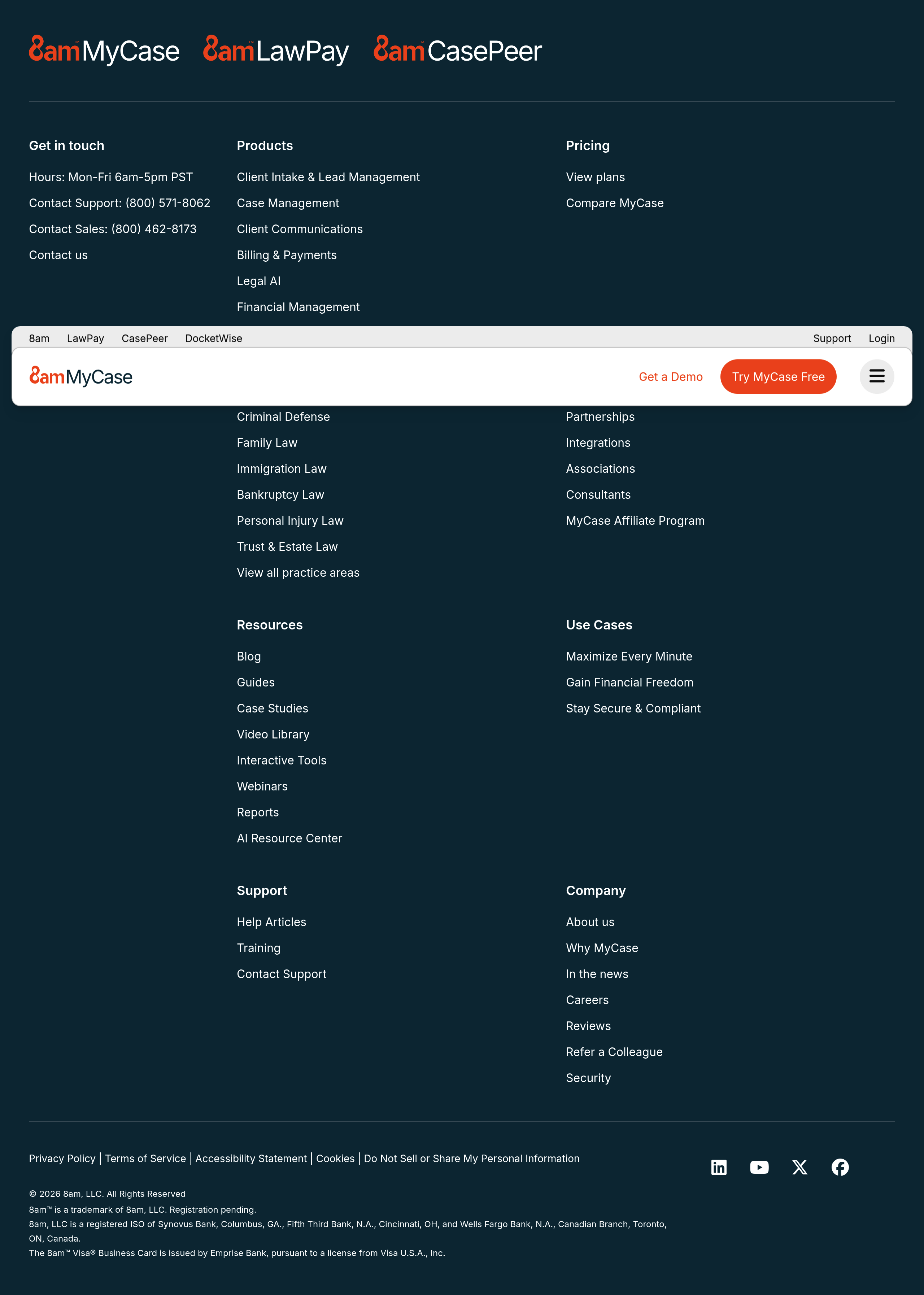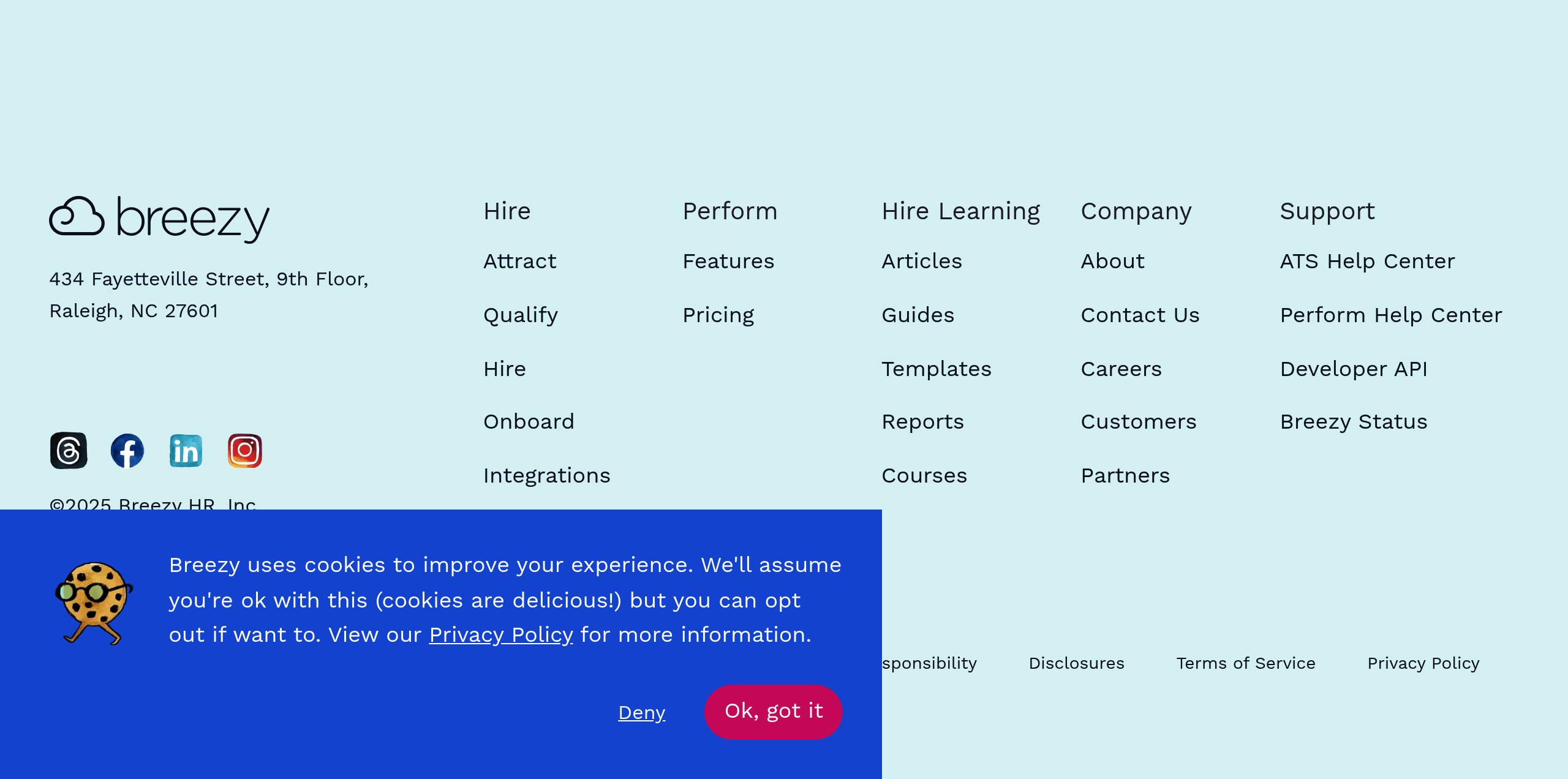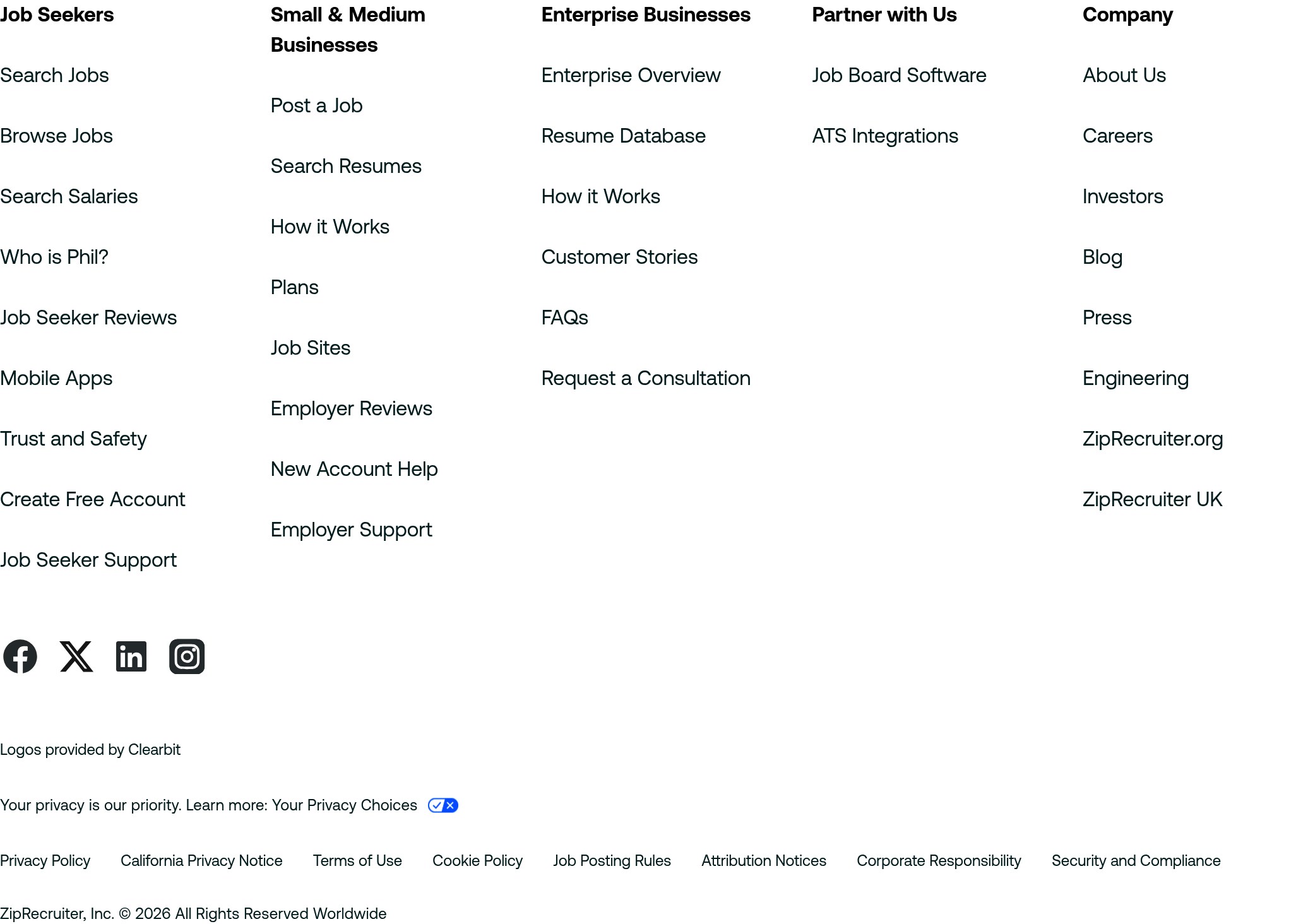 - Include company + product links, plus legal (Privacy/Terms) and contact options.