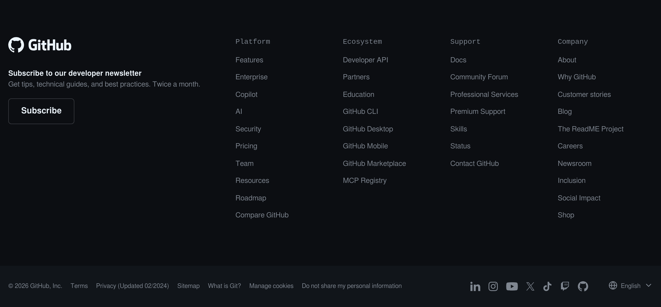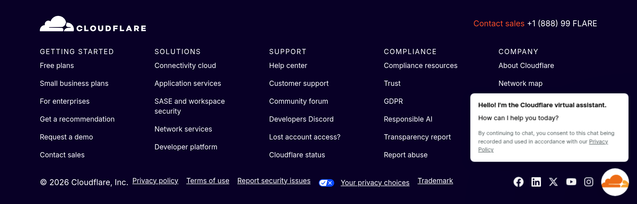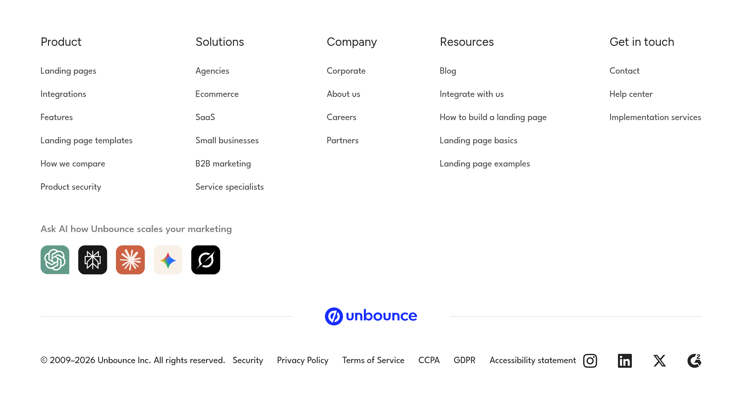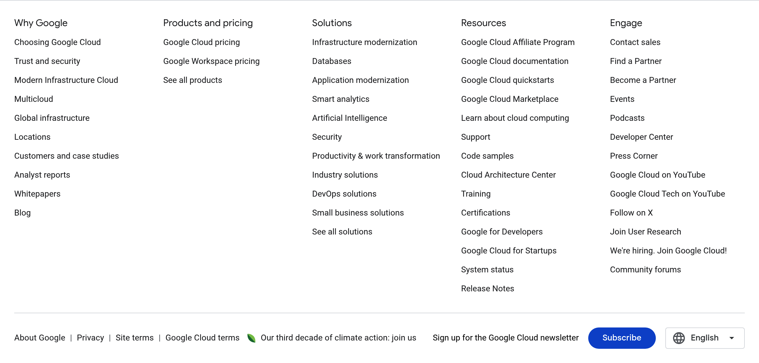 The footer is the last thing users see. It provides secondary navigation, legal information, and trust signals. While not the primary conversion point, it's important for completeness and SEO.