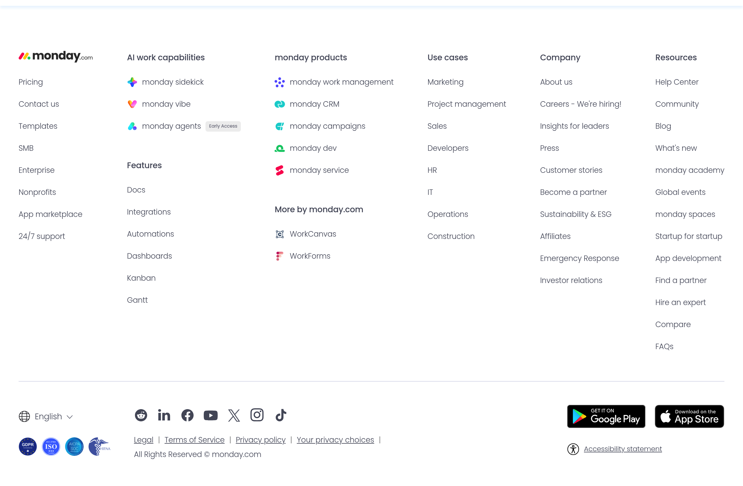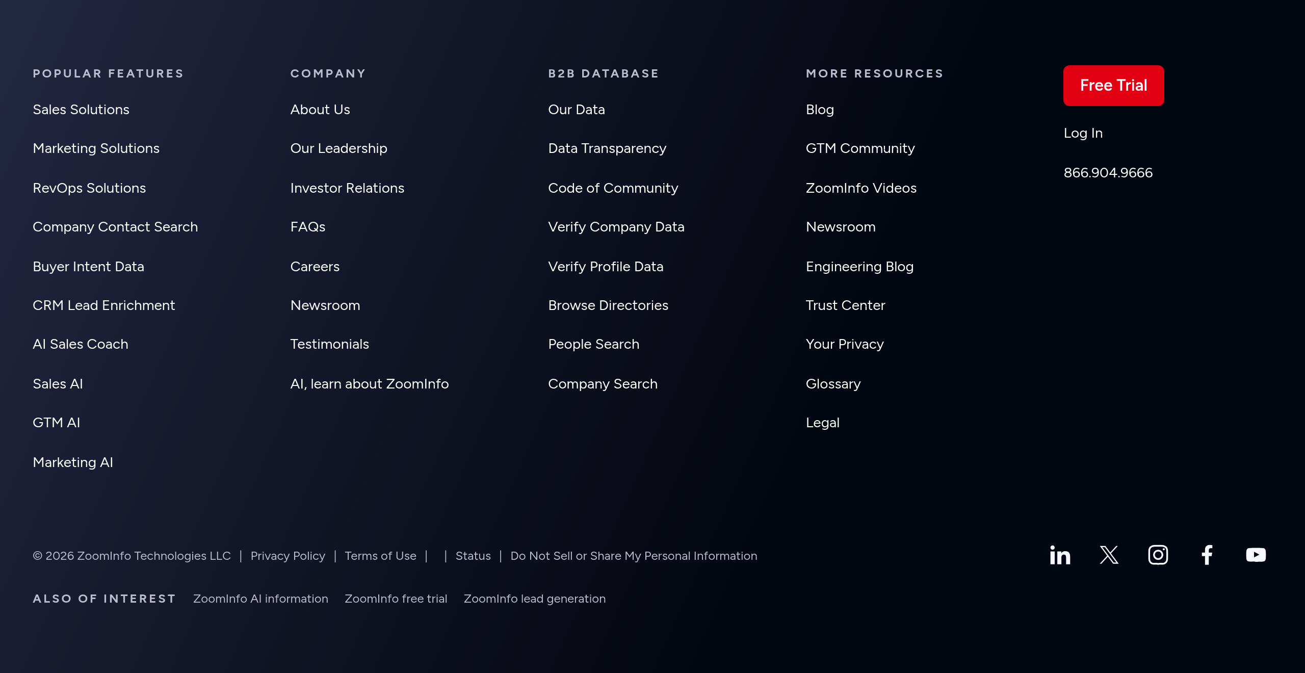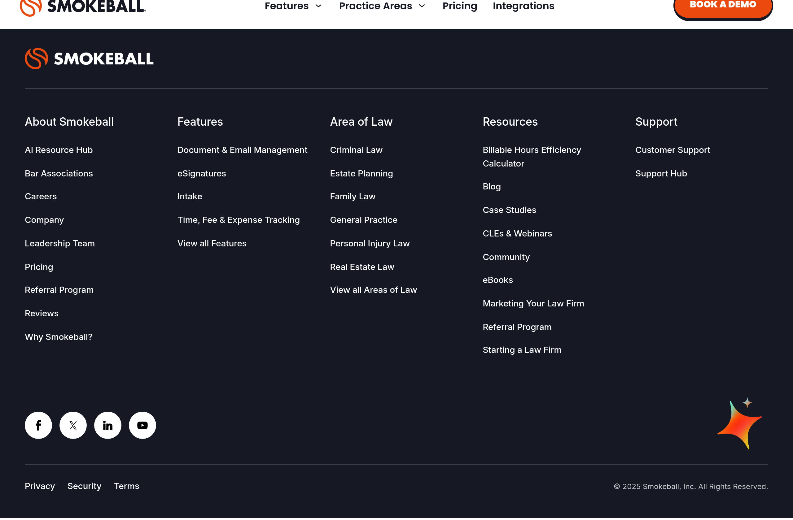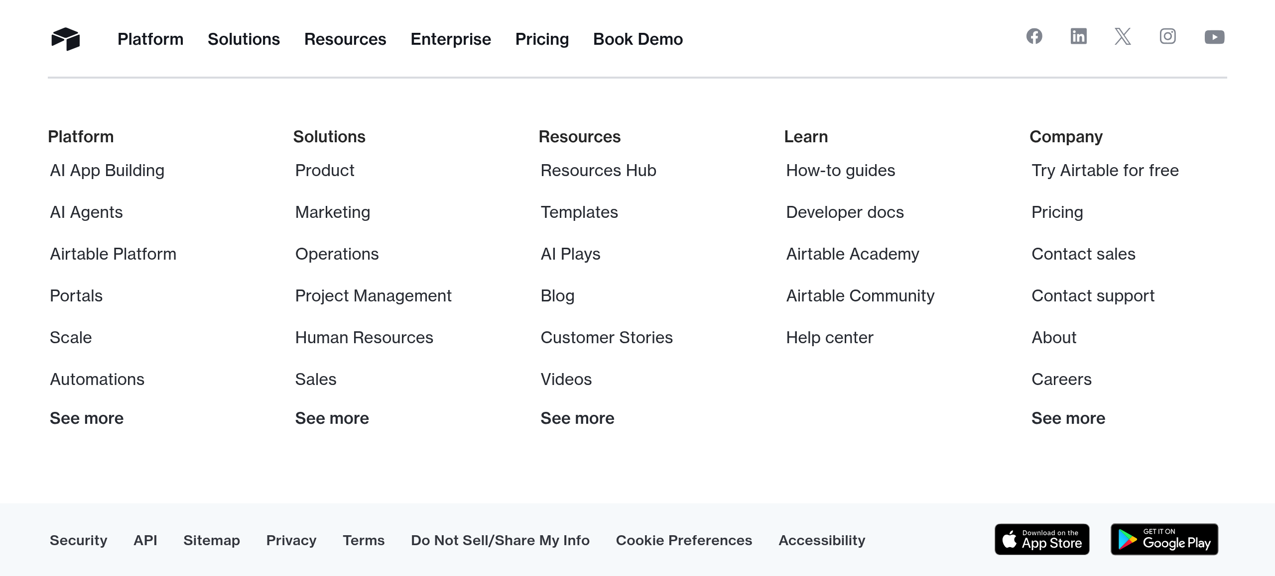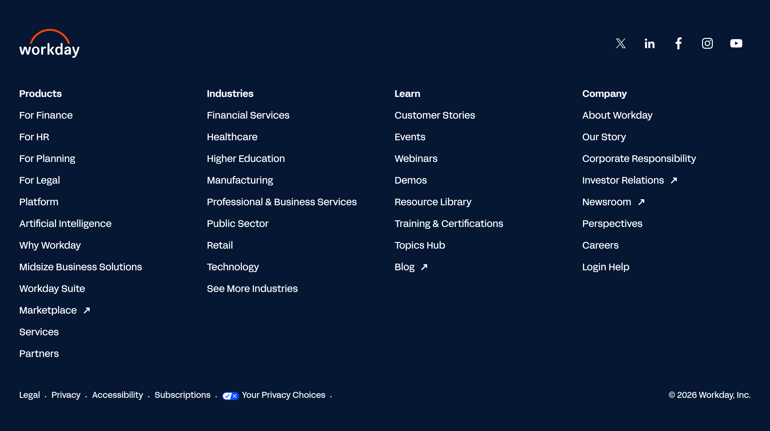 The footer is the last thing users see. It provides secondary navigation, legal information, and trust signals. While not the primary conversion point, it's important for completeness and SEO.