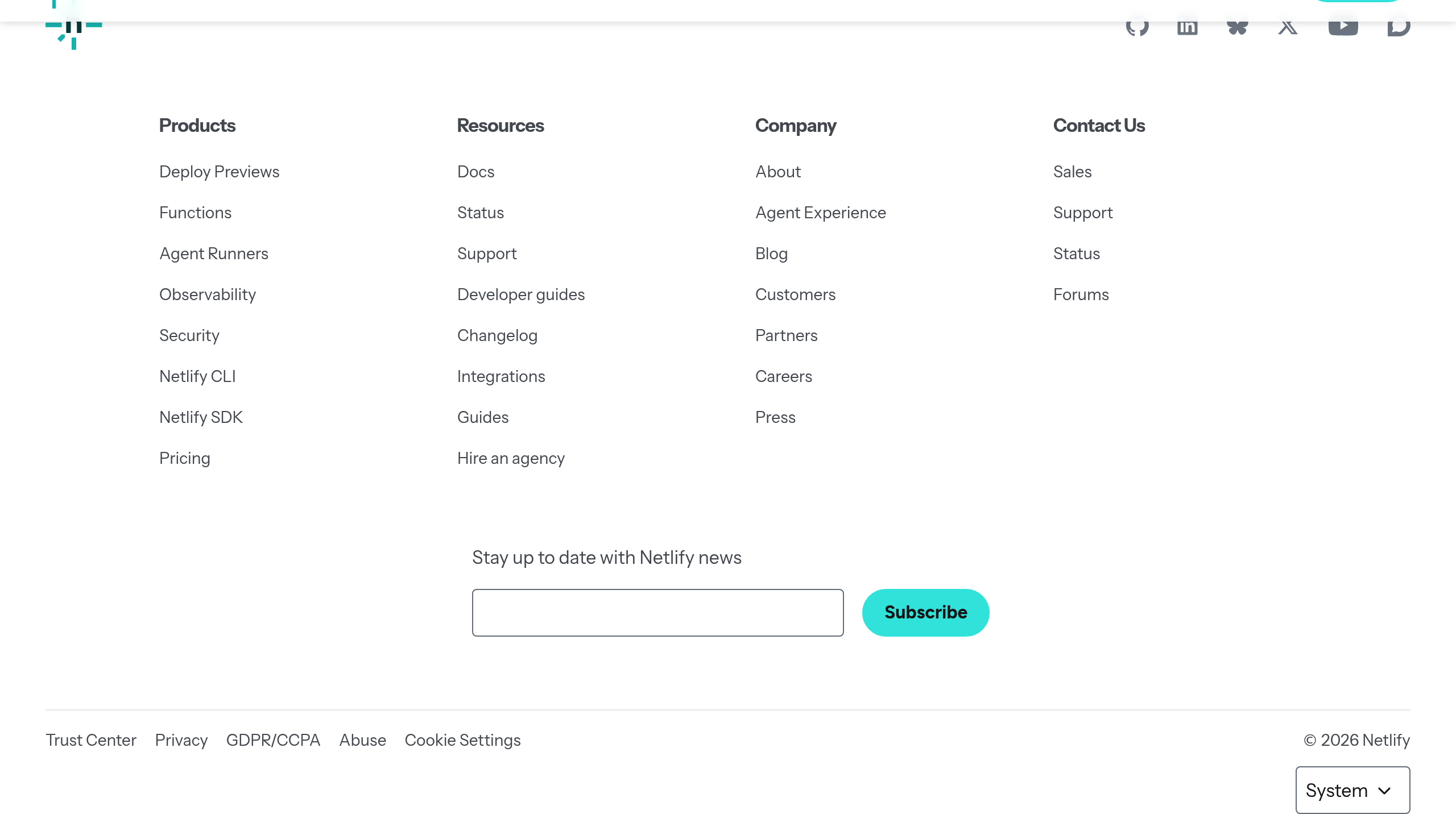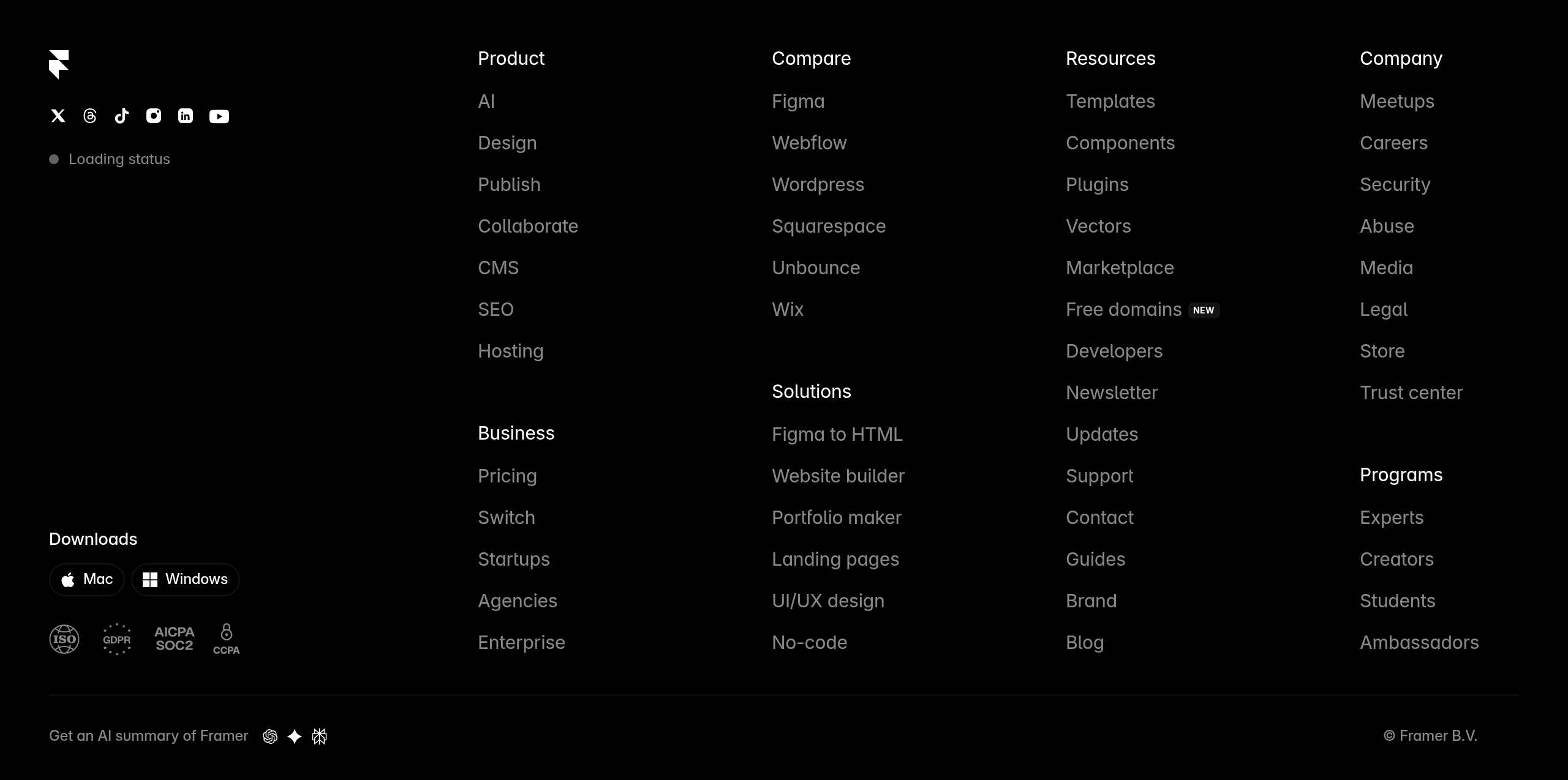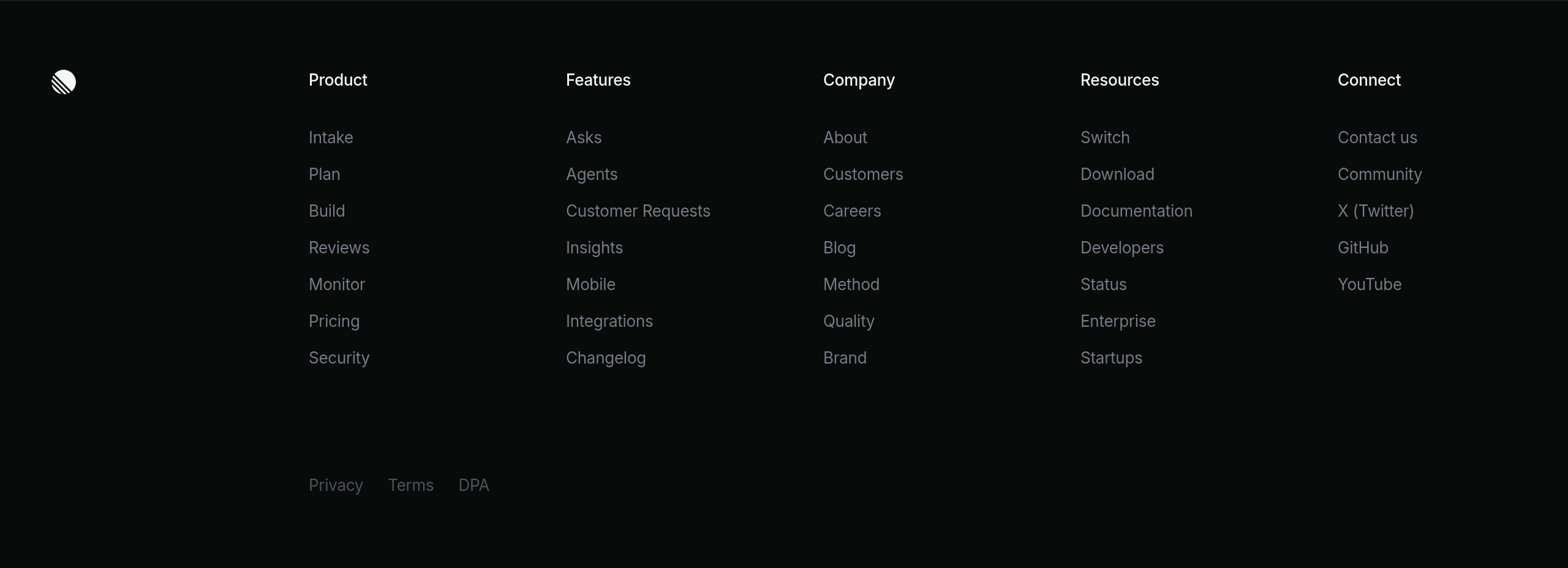 View site →Clean, organized footer with product links, company info, and legal. Well-spaced and scannable.