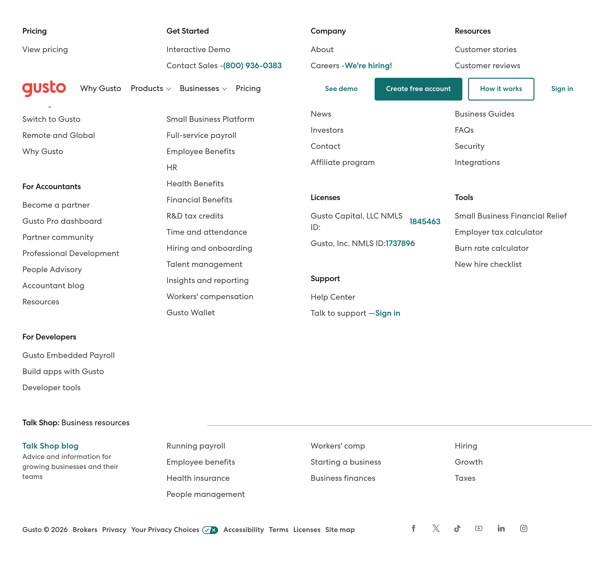 - Include copyright and legal information clearly, especially for B2B SaaS.