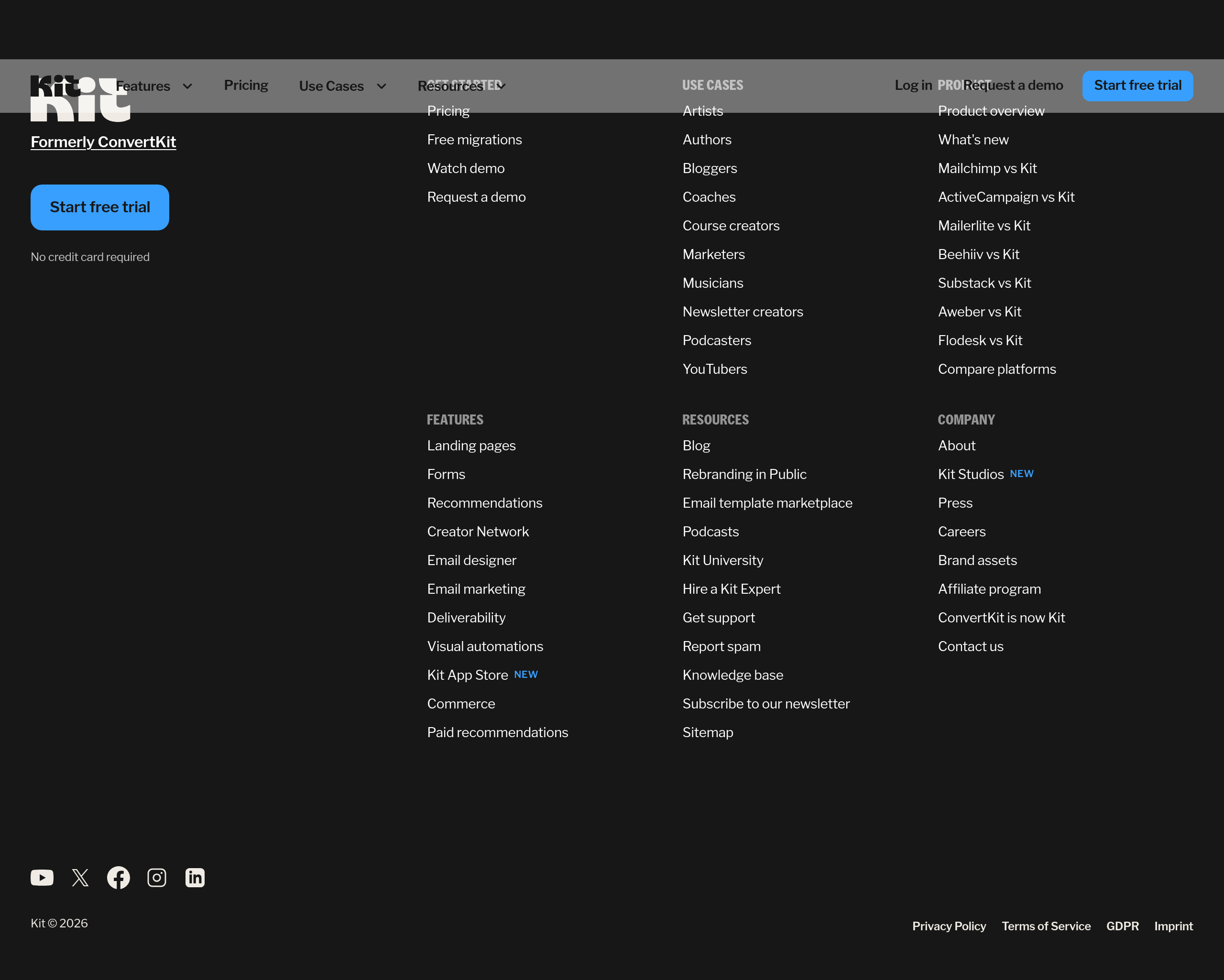 View site →Simple footer focused on key links. Includes social media and newsletter signup.